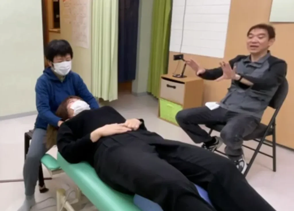 この日は、肩や背中の施術を中心に、手の圧の強弱や姿勢の安定を確認しました。スタッフ同士で交代しながら、患者さんへの声かけのタイミングや、施術中の呼吸の合わせ方も繰り返し練習しています。細かな動作を丁寧に見直すことで、安心して受けていただける施術を目指しました。