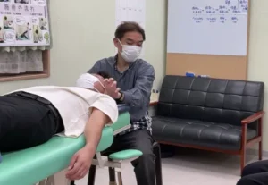 この日は、肩や背中の施術を中心に、手の圧の強弱や姿勢の安定を確認しました。スタッフ同士で交代しながら、患者さんへの声かけのタイミングや、施術中の呼吸の合わせ方も繰り返し練習しています。細かな動作を丁寧に見直すことで、安心して受けていただける施術を目指しました。